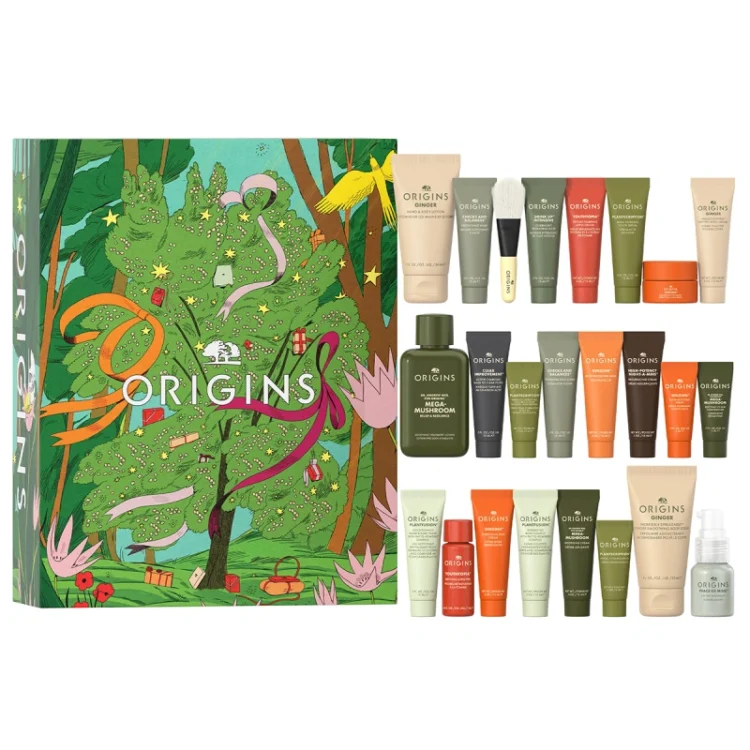 24 Days of Origins Essentials for Face & Body Gift Set. Origins skönhetsadventskalender med 24 mini-måsten för egenvård – inklusive bästsäljare för ansikte, bad och kropp samt en favorit i full storlek.