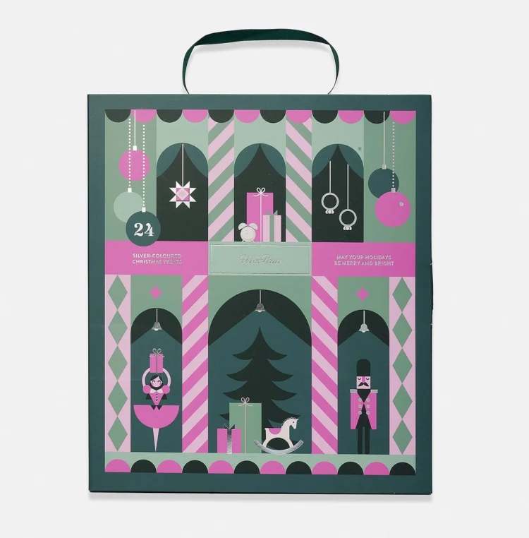 Gör nedräkningen till julafton till en fest! Denna adventskalender har ett silverfärgat smycke från Montini bakom varje lucka. Produktvärde: 1036 kr.