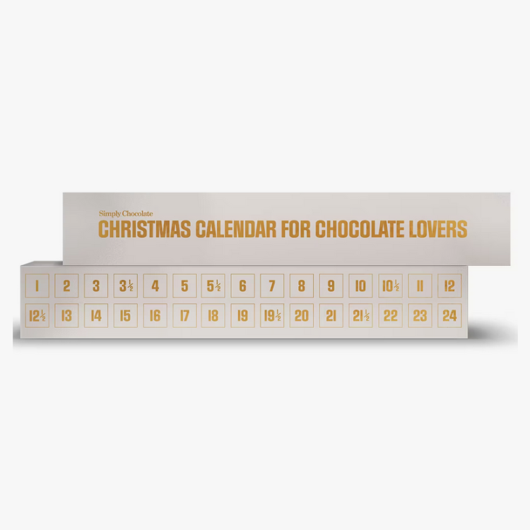 Simply Chocolate julkalendern är speciell, då det gömmer sig 30 luckor istället för 24. Den sista luckan är dock fortfarande nummer 24, men några av dagarna innan har två luckor så att du inte får en, utan två chokladbitar. På så sätt kan decembermånad göras ännu bättre.